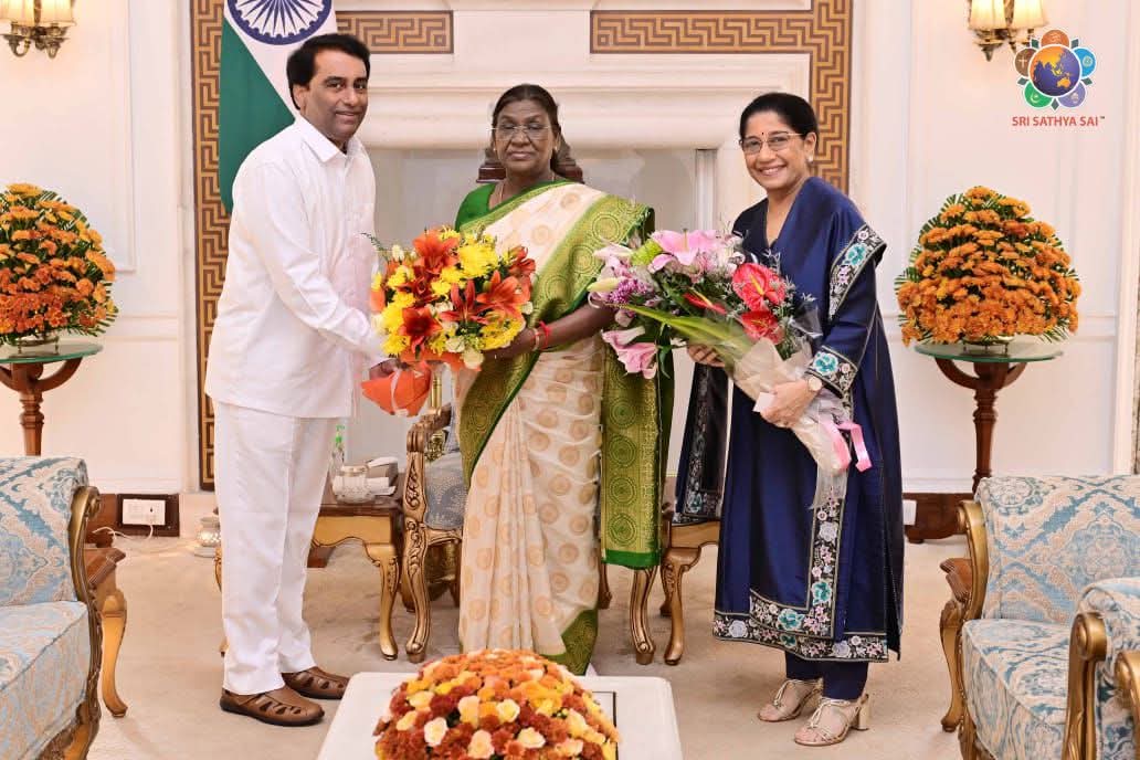 As part of the preparations for the Centenary Celebrations of Bhagawan Sri Sathya Sai Baba, RJ Rathnakar, Managing Trustee of the Sri Sathya Sai Central Trust, Prasanthi Nilayam, along with Ms Mallika Srinivasan, Chairman and Managing Director of Tractors and Farm Equipment Limited (TAFE), met the President of Bharat, Droupadi Murmu and extended a formal invitation to participate in the forthcoming birthday celebrations.