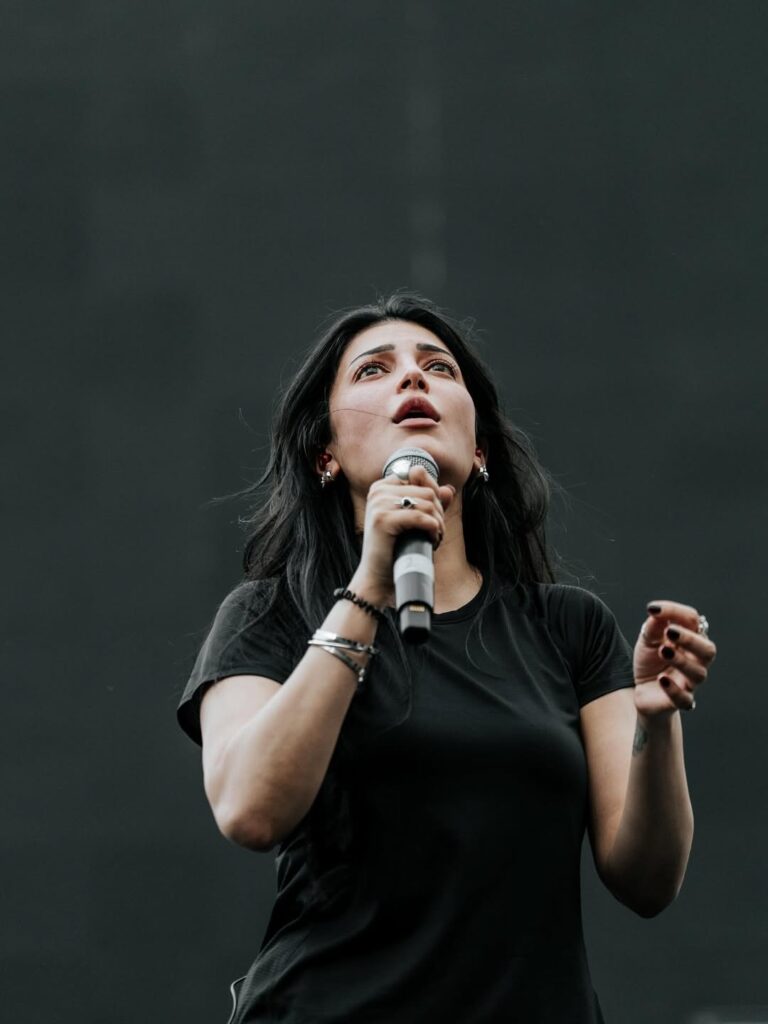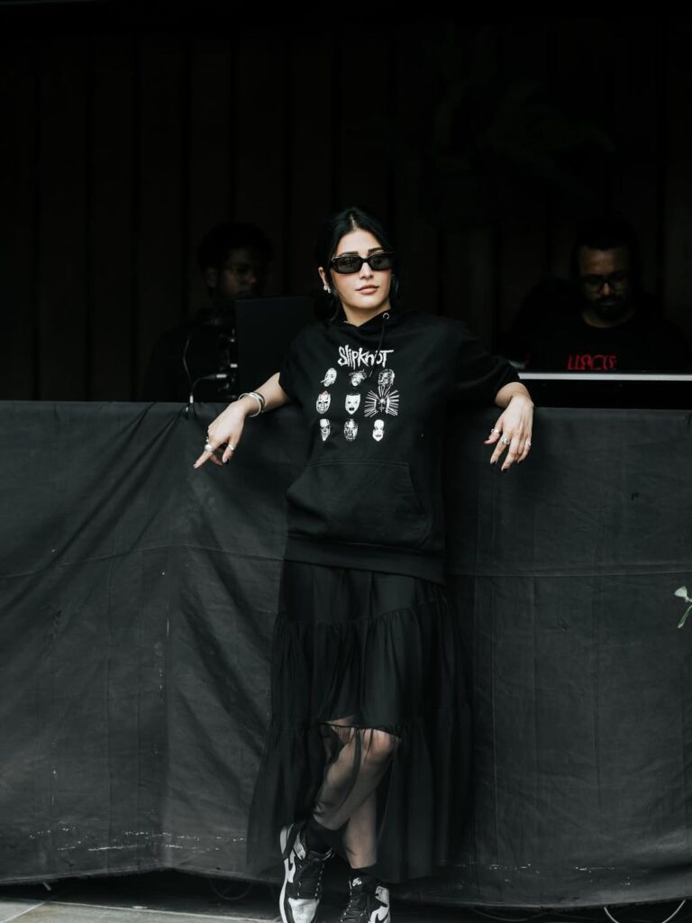 Shruti’s musical talent is as celebrated as her acting. She began her singing career at the age of six with the song “Potri Paadadi Ponne” for her father’s film “Thevar Magan” (1992). Over the years, she has lent her voice to numerous songs across multiple languages, establishing herself as a gifted singer. Additionally, Shruti has composed music for films, further highlighting her creative versatility.